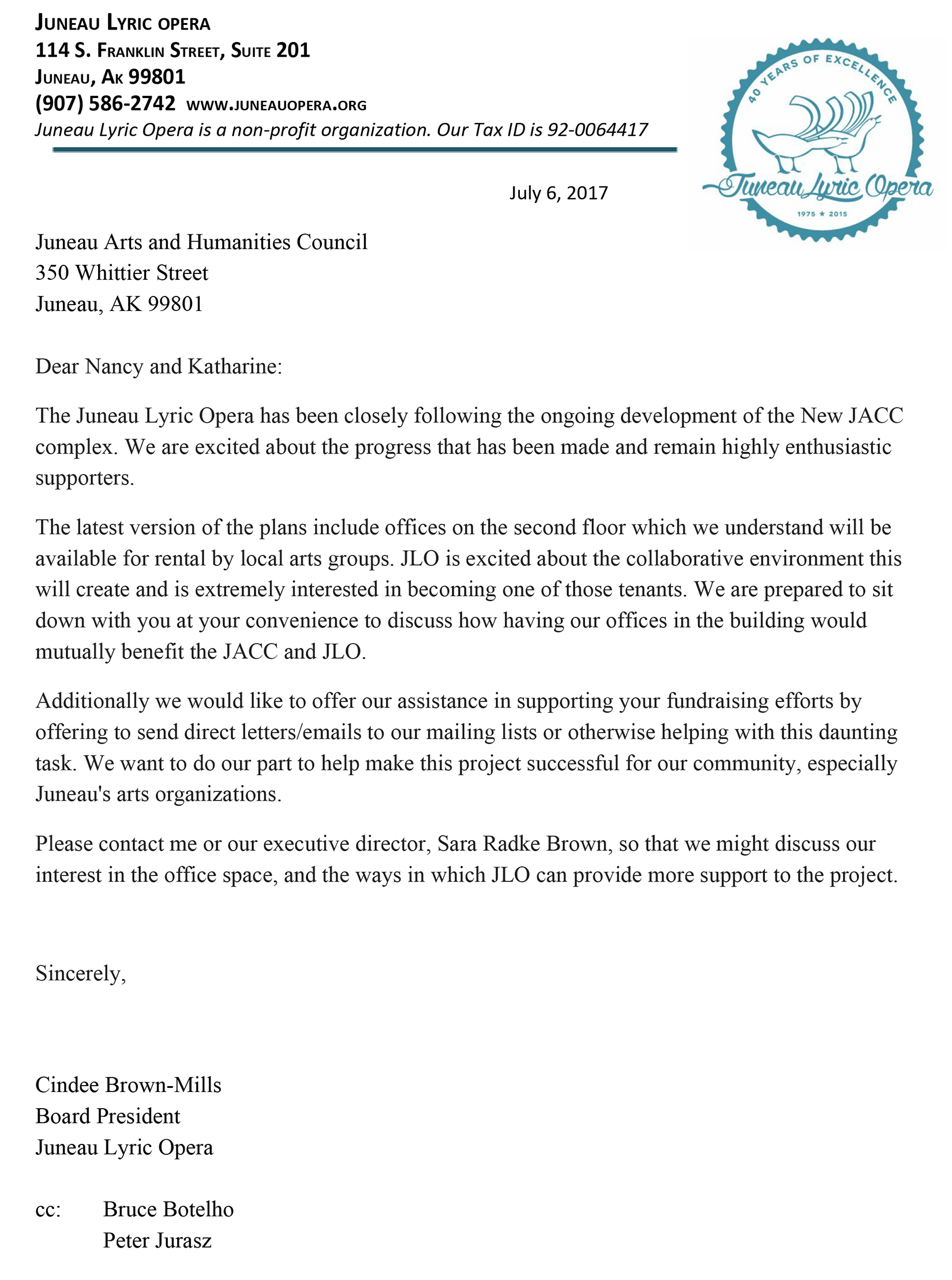 Letters of SupportFrom Cindee Brown-Mills, Juneau Lyric OperaPosted by Patricia Kalbrener on June 24, 2018June 24, 2018