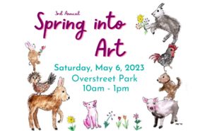 News & Events3rd Annual Spring into ArtPosted by Heather Hintze on April 25, 2023May 5, 2023Join us Saturday, May 6 for the 3rd Annual Spring into Art!This family-friendly event takes place from 10am to 1pm at Overstreet (Whale) Park.We’ll have live music from student groups, free popcorn and cute animal drawing stations.