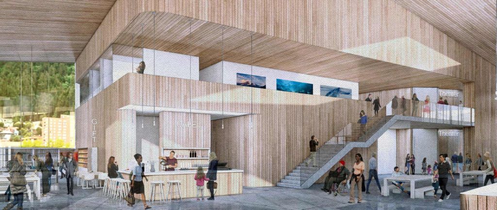 It will be used for the Box Office and a wide variety of functions including as a community gathering space. Flowing from the lobby is the Gift Shop - a venue for sales by local artists and crafts people - the Café, and the Visual Arts Gallery. Up a flight of stairs or accessible by elevator is the balcony to the theater and a suite of offices to be used by arts organizations, local non-profits and small businesses.
